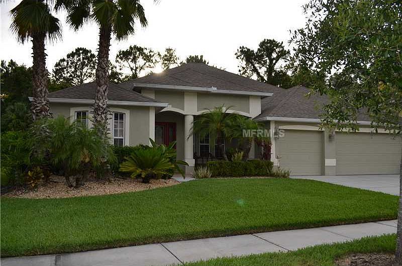 Beautiful home in gated Shoregrass section of Seven Oaks. Overlooking conservation this well appointed 4 bedroom 3 bath home has everything you are looking for. Wood and tile floors in the living areas, new berber carpet in the bedrooms and up in the bonus room. Kitchen includes granite counters and huge laundry/pantry with added cabinets for lots of storage. All appliances will stay with the home. Master is large and additional bedroom was converted to a huge walk in closet. Upstairs is a big bonus room, additional bedroom and full bath and bonus room opens to deck overlooking the yard and conservation. Awesome space for play area, guests or older child's private rooms. The covered screened lanai also offers great space for lounging and eating overlooking the large yard and conservation. All this in Seven Oaks the premier community in Wesley Chapel nearby wonderful shopping and dining. Make your appointment to see this lovely home now. Brokered And Advertised By: SEVEN OAKS REALTY GROUP, INC. Listing Agent: BRENNA EDDINS