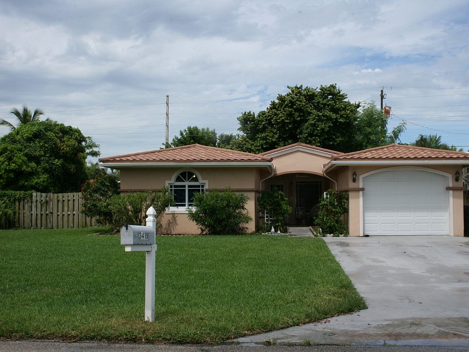 Modern single-story home on an oversized lot with NO HOA FEES in the prime East Boca Raton neighborhood of Villa Rica. With three bedrooms, two bathrooms and neutral decor throughout, this home was rebuilt to the studs in 2007 and features a ton of upgrades including marble flooring, impact doors and windows (including garage door and skylights), whole house permanent 16KW generator, re-inforced roof with 50 year warranty metal tiling, underground propane tank, solar water heater, high-efficiency A/C and remote operated ceiling fans, hot tub (which will convey with sale), spray foam insulation in walls and roof and wiring for CAT5/cable/surround sound/security camera. The open plan kitchen showcases granite countertops, stainless steel appliances and gas stove with spacious dining area.