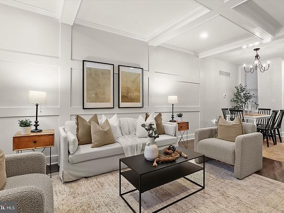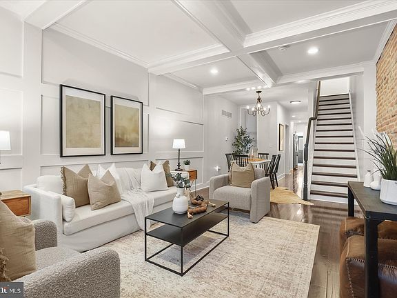 City living at its finest awaits in this striking brick and hardiplank style exterior townhouse, perfectly located in the heart of the city. Enjoy proximity to an abundance of shopping, dining, and entertainment, including Patterson Park, Brewer's Hill, The Shops at Canton Crossing, the Inner Harbor, and nearby sports stadiums. Step into the main level and be greeted by hardwood floors that flow seamlessly throughout, a charming brick accent wall, coffered ceilings that elevate the space, crown moldings, and a board-and-batten feature wall. The dining area leads seamlessly into the gourmet kitchen, where a breakfast bar peninsula, subway tile backsplash, 42” cabinetry, stainless steel appliances, and quartz countertops combine to create a chef-inspired space perfect for entertaining and everyday living. The main level also includes a powder room, laundry area, and access to the one-car parking pad. Retreat to the primary bedroom suite featuring a vaulted ceiling, recessed lighting, and two closets, one of which is a walk-in and connects to a dual-entry bath with marble-inspired flooring, double vanity, and walk-in shower with modern tile. A second bedroom suite completes the upper-level sleeping quarters. The spacious hallway leads to a rooftop deck offering spectacular city views. Commuting is effortless with major routes including I-695, I-83, and I-95 providing easy access to points north and south. Roof & Roof Top deck 2024, HVAC 2022, Hdwd Flooring 2022, Kitchen Appliances, Washer Dryer 2022, Custom Closet in Primary, Custom Shades Upstairs, Interior Fresh Paint.