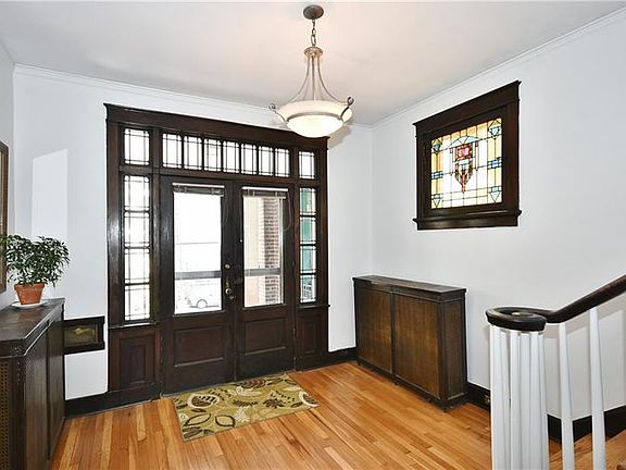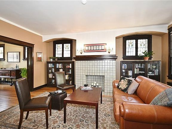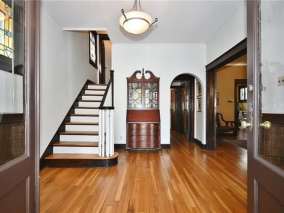 This stately home in the Oakland Square Historic District has been lovingly maintained by only two families for 100 years. Step into the formal foyer and admire the stained glass, hardwood floors, and rich wood moldings from another century. Living and dining rooms are on a grand scale, each filled with light and adorned by French doors, ceramic fireplaces, and crowned by a picture window with window seat, overlooking the private backyard garden and patio. Bright and airy eat-in kitchen offers ample cabinetry and a long peninsula workspace. Above the first-floor powder room, two hardwood staircases lead to four large bedrooms, two with dramatic city skyline views, and two full baths with vintage tiling. The third floor has two full bedrooms. Walk-out basement is spacious, dry, with roomy laundry and storage areas. Handsome two-car garage provides rare off-street parking, steps away from Schenley Park, CMU, Pitt, UPMC hospitals, Phipps Conservatory, and the Carnegie.