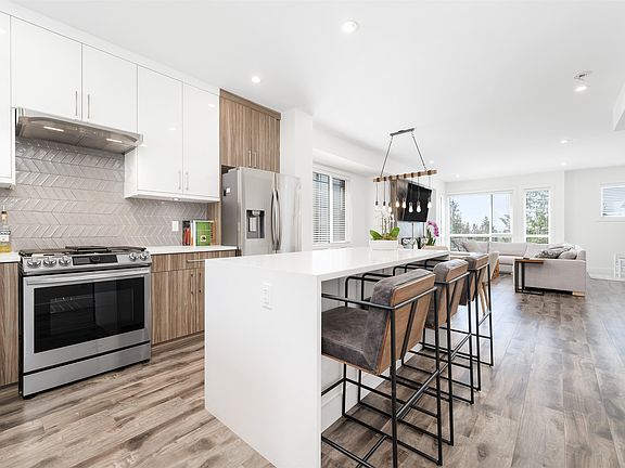Welcome to the Roxton, built in 2021 by Aria Homes. Collection of quality luxury row homes in Burke Mountain. NO STRATA FEE. This beautiful, spacious 4 bedroom end-unit home is an entertainers dream! Open floor plan with 3 bedrooms upstairs and 1 bedroom on the below-main level for guests. Balance of 2/5/10 warranty. Detached garage AND plenty of street parking available. Conveniently located within a 10-minute drive to the city centre. Steps away from public transit, Leigh Elementary school and directly across a beautiful park! Surround yourself with easy access to nature, walking trails, shops, and more. Gorgeous mountainside community with an abundance of natural environments. UNOBSTRUCTED Mountain and Park Views! Open House Sat Jul 9 12pm-2pm Sun 2pm-4pm ACCEPTED OFFER
