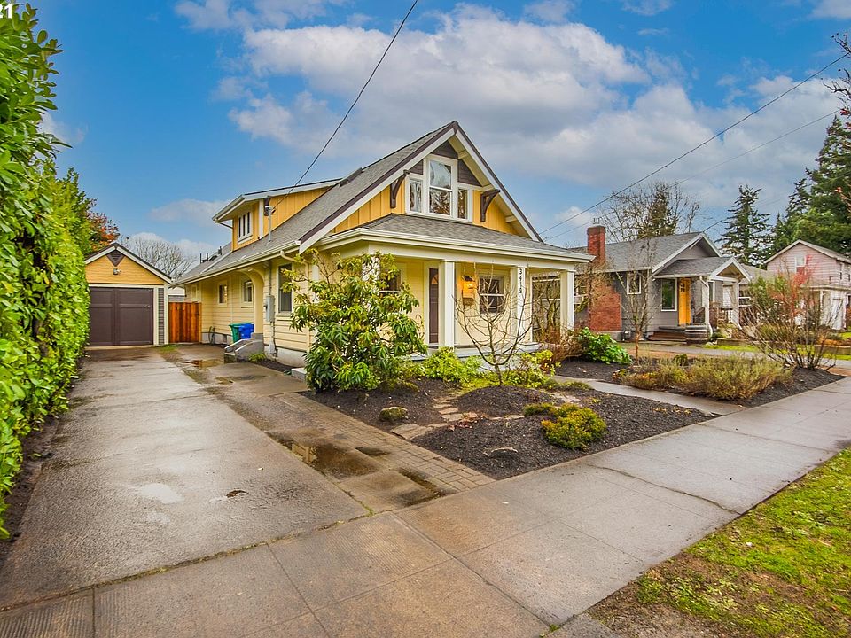 Grand Craftsman welcomes you with a large front porch, Open-Flow floor plan, hardwood floors, gas fireplace, Gourmet Chefs Kitchen W/ Island, custom-designed tile-work, family room, utility room on the main floor, spacious bedrooms, deck for BBQ's with friends & family to enjoy western sunsets on, lovely sunny yard for gardening, fully fenced, detached garage, Shop, perfect home office or art studio Shed, near Mt Tabor, public transportation, a Bikers Paradise, all just waiting for you! [Home Energy Score = 3. HES Report at https://rpt.greenbuildingregistry.com/hes/OR10188389]