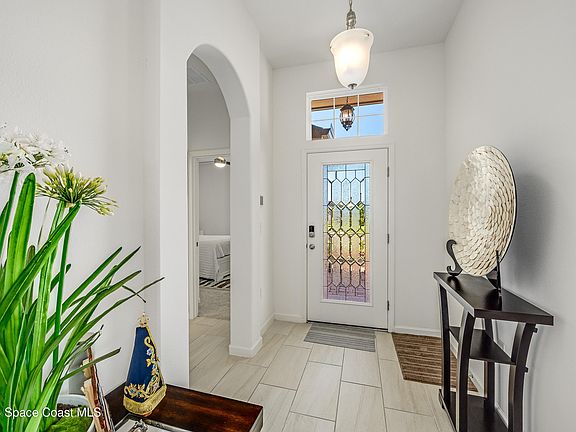 Discover 3419 Salt Marsh Circle in the prestigious Sawgrass Lakes community of West Melbourne! This 2020-built home features 4 bedrooms, 3 baths, and a spacious 3-car garage within 2,634 sq ft. Gently lived in, it offers stunning curb appeal with a pavered driveway, stone-accented exterior, and professional landscaping. Inside, 12x24 tile flows through open living spaces, complemented by a chef's kitchen with stainless steel appliances, quartz countertops, and a large island. The primary suite boasts a tray ceiling, luxurious en-suite bath with dual vanities, soaking tub, walk-in shower, and ample closet space.