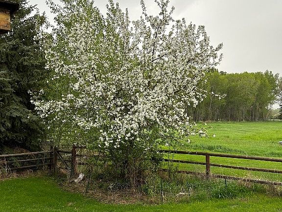 Welcome to this charming cedar-sided home boasting a delightful blend of comfort, functionality, and craftsmanship. Nestled in a serene setting within city limits, this single-level residence, built in 1985 and recently remodeled, presents an inviting ambiance and an array of appealing features. Spanning 1825 square feet of finished living space, this residence offers three cozy bedrooms and two tastefully appointed bathrooms. The interior showcases a seamless fusion of modern updates and rustic charm, featuring newer laminate flooring that complements the warm allure of hickory cabinets and newer appliances in the kitchen. Adding versatility to the property, an additional 418 square feet of workspace awaits. Previously converted from the attached garage, this area, while lacking a permanent heat source, is a versatile space equipped with workbenches, tables, and ample storage shelves. Ideal for crafters, quilters, or hobbyists, it offers flexibility as a workshop or creative haven. The current owner efficiently maintains warmth using a portable electric heater. Stepping outside, an expansive outdoor living area beckons. A screened porch and covered patio offer opportunities for relaxation and entertainment, extending the living space to the serene outdoors. Welcoming you at the entrance, an inviting covered front porch sets the tone for the cozy and tranquil atmosphere. Beyond the home, the meticulously landscaped yard unfolds with surprises—a 10x10 log playhouse with a loft, providing a charming retreat for the kids. Fruit trees, including apple and pear trees, grace the yard alongside garden boxes protected in an enclosed area to deter deer. Additionally, a chicken house caters to those with a penchant for self-sustainability and farming. Car enthusiasts or hobbyists will appreciate the insulated and heated 22x30 shop, complete with an attached covered carport accommodating up to four vehicles comfortably. Highlighting the property's appeal, the backyard presents breathtaking vistas overlooking adjoining ranch land, imbuing a sense of tranquility and space. This fusion of country-style living within city limits offers the best of both worlds—a serene retreat with convenient access to urban amenities. With its thoughtful features, stunning views, and versatile spaces, this home exudes comfort, functionality, and a captivating blend of indoor-outdoor living—an ideal haven for a harmonious lifestyle in a welcoming community.