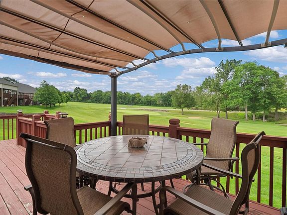 Gorgeous low maintenance villa that backs up to the 7th hole on Bear Creek Golf Course! This is an all brick villa that was a former display and features 2 bedrooms and 2 full baths on the main level with a full bath and bedroom in the finished lower level. There is newer wood flooring throughout the main level. This home features a spacious open layout with large vaulted and reverse vaulted ceilings with a beautiful wall of windows to have a view of the golf course. The primary bedroom features coffered ceilings, and an en suite bath that has double sinks, jetted soaking tub and separate shower. There is a finished lower level with 9' ceilings, a 3rd bedroom, 3rd full bath, wet bar, family room and rec-room/dining area with a walk out. Sit and enjoy your coffee on your peaceful deck or patio below and watch the golfers.