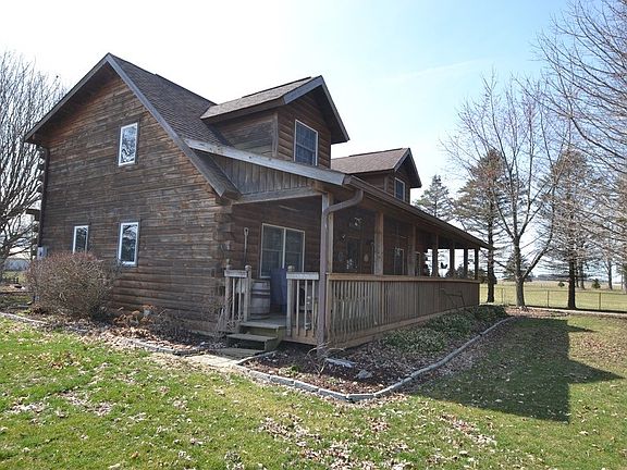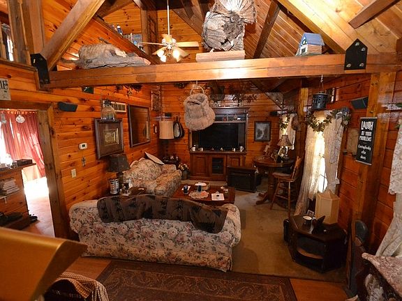 This place was built in 1996 and it is solid logs, no fake siding on this home. The yard is two parcels totalling .87 acres The front porch is massive and goes the full length of the front of the house. Plenty of room for a couple of porch swings. In the back yard, there is a huge wood deck with a built in hot tub. It's private and secluded so no prying eyes. What happens on the back deck stays on the back deck! it's the perfect place for warm summer night cookouts or cool evening relaxing. Inside the house, there is a fantastic great room with massive wood beams and trusses. Every image you have ever thought about a log house is in this room. Except for a fireplace for heat. this house has a geothermal heat pump.