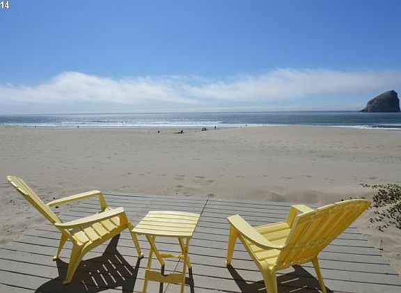 OCEANFRONT CUSTOM HOME! Wall of windows to spectacular ocean view that includes, Haystack Rock & Cape Kiwanda! New roof, windows & tile floor in kitchen, dining, entry & bath. Fresh paint inside & out. Great entertaining home! Vaulted ceiling with beams, custom kitchen cabinets, dual kitchen sinks, jetted tub, built-ins throughout & great storage. Heated garage with full overhead storage. Miles of beach to explore right out your door!