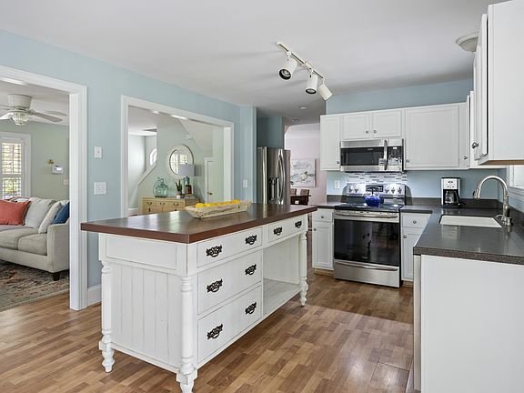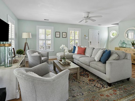 Open floorplan on half acre lot near Remley's Point boat launch. Screened porch and patio overlooking huge fenced back yard! Gorgeous trees & lush landscape for privacy. Carolina jasmine sweeps across the wrap-around porch to welcome you. Inside you'll find an open kitchen with new stainless appliances, moveable island and built-in banquette. Mud room off the kitchen leads to a first floor flex space with its own private entrance - perfect for receiving clients at a home office! Upstairs is the master suite with dual closets, 2 guest bedrooms, hall bath and a large flex space/4th bedroom. Back yard has large storage closet and fabulous new shed. Circular drive creates fluid parking for vehicles and boats. This is the huge lot at the foot of the bridge you've been looking for!