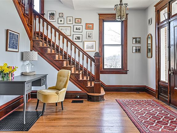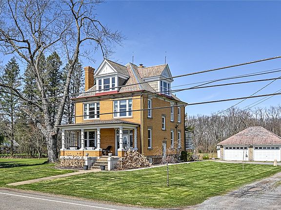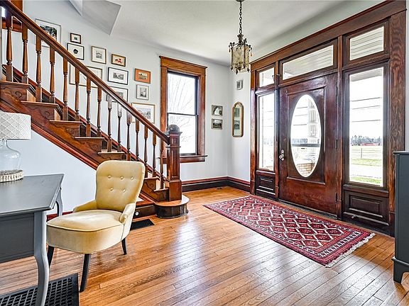 Situated on 2 acres in Penn Township, this historic Butler County home has been fully restored and is turn-key. Built in 1908, this home has all the modern conveniences needed for a home of today, while maintaining its original character and unique features: transom windows in every room, ornate staircase, original hardwood floors, wide baseboard, and pocket doors. This home offers a large front porch to enjoy sunsets, a detached two-car garage, and a flat, expansive yard, perfect for gatherings and gardens. With large and perfectly restored windows throughout, an up-to-date kitchen, laundry/mudroom combo, separate dining room and living room are found on the first floor, in addition to a powder room and large foyer. On the second floor, you'll find the primary bedroom with an attached bathroom and large closets, in addition to two other bedrooms, another full bathroom, and a spacious linen closet. The sizable third floor can be used as a bedroom, office, or recreational space.