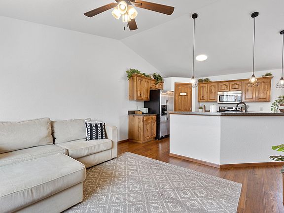 Check out this wonderful 1960 sq ft, 3 bedroom, 2 bathroom, and 2 car garage home located in Cheyenne Pass Subdivision. The main level boasts an open floor plan with laminate flooring throughout the common area and a spacious living room. The kitchen has an island that is huge, housing the sink & dishwasher and is perfect for additional seating. You will enjoy the updated fixtures, hardwood cabinetry, and corner pantry. You will also find 2 nice sized bedrooms and a shared bathroom. Downstairs is an attractive sized family room, the primary bedroom with a dedicated bathroom, which could also be an in-law suite. Owners loved the neighbors, the quietness, the spacious bedrooms, huge closets, large garage, and the limited amount of snow buildup they get because of the home's location. Did we mention the privacy fenced backyard? The owners made this house their home and they know you will too!
