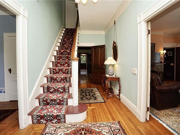 Historic Ralph Randolph Barker House in the desirable Boulevard neighborhood. Currently used as a two family home and can easily be brought back to it's former glory. Many original details, with 4 beautiful fireplaces, 3 of which have been converted to efficient and lovely gas logs. Quartersawn oak floors, original paneling, hand painted tile on fireplace surrounds, original fixtures, and a deep relaxing wrap-around porch. Seperate gas and electric for the second floor apartment and plenty of parking. The grand staircase leading to the second floor boasts original turned spindles and ballusters which leads to potential guest rooms should your desire be to operate a Bed and Breakfast! Massive open basement with ground level walkout. The almost full acre lot has an existing pad and foundation for a future garage. The location is central to just about everything. 5 minute drive to nearby beaches and 10 minutes to downtown Newport.