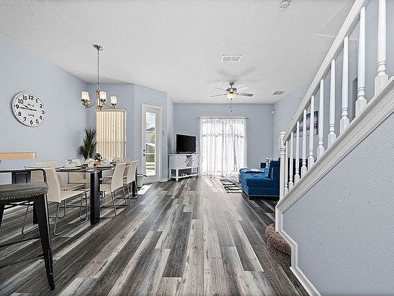 Beautiful and Renovated 4 Bedroom / 3 1/2 Bathroom W/ Pool Townhome, in the sought after community of Tuscan Hills. Community is Gated! You can make it your next primary home or use as an investment property, long and short term rentals are allowed! Double Master Bedrooms, one is conveniently located on the first floor and one on the second floor. Home was Renovated in July of 2022. Vinyl plank throughout first floor and new carpet in stairs and second floor. Kitchen has all Stainless Steel Appliances. All three showers were renovated with beautiful 12 x 24 Tauleto Bianco Porcelain Tile, New Toilets, Sinks and Faucets. All Bedrooms are equipped with ceiling fans. Washer and Dryer convey with sale. Conveniently located near major highways, shopping, restaurants and Disney Parks. Furniture is negotiable. Please Note - Twin mickey beds are no longer in the third bedroom. Community features tennis courts, sand volleyball court, fitness center and clubhouse. Sellers are Licensed Real Estate Agents!