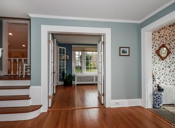 Charm galore in this lovely updated vintage colonial set on a beautiful street in Stratfield area. First time on market in 22 years! Formal LR w/ wood burning fireplace, French doors, custom built-ins, crown molding. LR opens to formal DR w/ chair rails. Eat-in kitchen w/ Viking stove, 2 wall ovens, granite counters, breakfast bar & dining area, sliders to rear patio. Family/office/study & powder room complete the main level. MBR w/ full bath, stall shower on 2nd floor. 3 add BRs w/ custom built-in cabinets & desks, share a hall full bath. Finished attic offers a bonus/play room w/ half bath, walk-in closet & storage space. Full, unfinished basement w/ lots of storage. Detached 2 car garage. Perfect family home in a friendly neighborhood!