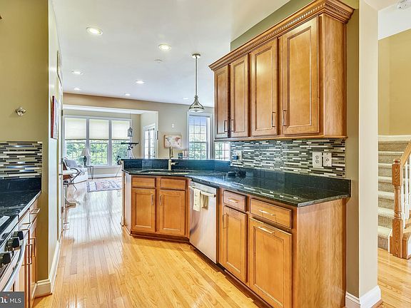 Excellent location, GORGEOUS home! Brick front TH , w/two-car garage, and over 2800 sqft. Optional fourth bedroom on the lower level. Exquisite wall features in breakfast room and family room. Gourmet style kitchen with tile backsplash, granite countertops, and maple upgraded cabinets. Elegant powder room, wood floors, sunroom bump-out on three lvls. Gorgeous molding in the dining room, dramatic two story-foyer. Master suite with spa-like master bath. Custom, outfitted, master suite closet. Spacious secondary bedrooms. This home is flooded in light!!! Create your own outdoor living oasis... add a deck and/or paver patio. Private backyard setting. Quality materials used in renovations.