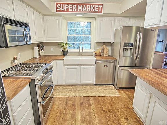 Craving something a little different than the cookie cutter style home? Venture into this spacious foyer and allow the sea of hardwood (2019) to invite you in. Upgraded kitchen featuring stainless 6 burner gas stove w/dual convection oven, wood styled countertops, farmhouse sink, large peninsula for gathering, fully stainless appliances convey. Dining room is perfect for entertaining with plenty of room for table expansion or additional seating. Coffee or bar nook is ready for that special touch! Sliding glass doors lead to a 20x18 stained and stamped concrete patio (2019) summertime perfection! Sneak down the rock stairs and re-enter into the two-tier, cedar lined solarium with hot tub (negotiable), soaring ceiling & pop open skylights to let the breeze inside... spiral staircase leading to upper level (currently used as an office). With four bedrooms 2.5 baths, outdoor storage shed, new roof (2019), and tons of character this is not the average tri-level.