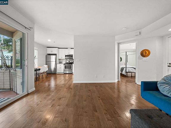 Welcome home to this charming and move-in-ready 1-bedroom, 1-bathroom condo in a prime Livermore location! This ground-level unit overlooks the pool, offering a peaceful and scenic setting. Step inside to discover a rare find—real hardwood floors throughout the home, adding warmth and elegance. The recently updated kitchen features modern finishes with stylish upgrades and stainless steel appliances. The spacious bedroom boasts new recessed lighting for a bright and inviting atmosphere. This home offers plenty of ample storage space to keep everything organized, including a walk in closet off of the bathroom. The stackable washer and dryer are included in the sale for added convenience. A private patio provides the perfect spot to relax and enjoy the outdoors. Nestled in a well-maintained community with lush, mature landscaping, this development offers fantastic amenities, including multiple pools, spas, tennis courts, a clubhouse, a children’s playground, and scenic walking paths. With plenty of guest parking and a highly convenient location near shopping, parks, trails, and Livermore's beautiful wine country. This home is an incredible opportunity! Don’t miss out—schedule your showing today!