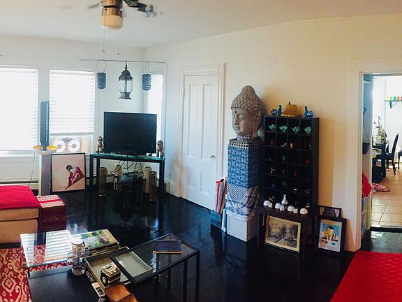 Large, one bedroom apartment available in a classic refurbished Victorian house with large porch across front entrance and gardens in front and back. Recently refinished hardwood floors. This apartment is located on the 2nd floor. The apartment has high ceilings and includes a large, sunny eat-in kitchen (with gas range and above-range microwave), living room, bedroom (with large closet wardrobe), bonus turret room, and full bathroom (with tub/shower). Shared laundry facilities in the common basement. The apartment comes with one off-street parking space on the property, with easy on-street parking for a second car (if needed); no city parking permits needed. There is also a large, dedicated storage space in the basement for this apartment. Backyard patio and garden is great for hanging out and having a cookout/BBQ. Located in Waltham near the Newton line, also close to Watertown. Short walk to Moody Street and downtown Waltham with great restaurants, movie theater and nearby public transportation (express bus to Boston, Green-line T, and the Commuter Rail). Mass Pike and other highways are all a short drive and it's only fifteen minutes to Boston! Available September 1st for a one-year lease. Tenant pays for heat (natural gas), electricity, and internet/cable. Renter is responsible for gas (baseboard heat), electric, and internet. Last month's rent due at signing. No smoking allowed. No dogs, no exceptions. Owner pays for water.