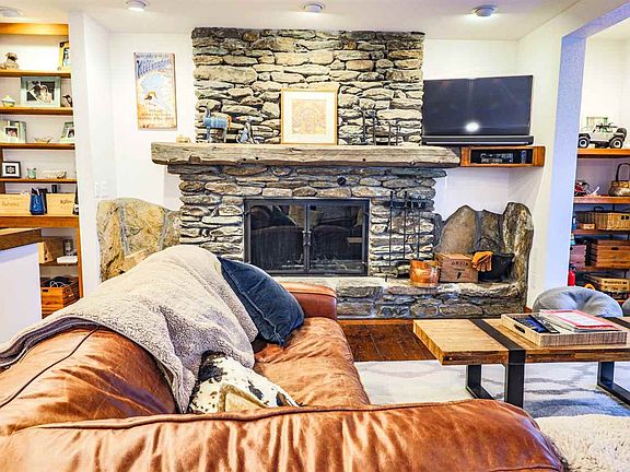 Wonderful private location with long distance lake and mountain views, and less than ten minutes to Jackson Gore base area at Okemo Mountain. The main level includes kitchen with breakfast bar and stainless steel appliances, dining/living area with woodburning stone fireplace, and a tiled entry with half bath. A wall of glass frames the entire area with views of Lake Amherst and the Green Mountain Range and leads to a large wrap around deck, perfectly positioned for year round entertaining. Each bedroom has its own private bath and the master bedroom features a second woodburning fireplace. Wonderful wood floors highlight living spaces and bedrooms. A well positioned woodshed keeps the firewood dry and allows for additional storage for skis and other toys.