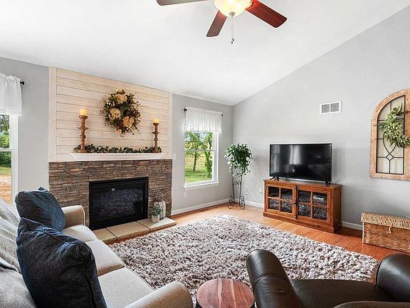 Meticulously maintained 4 bed 3 bath ranch home with incredible country views. Vaulted ceilings, large windows, gas fireplace and beautiful hard wood flooring, welcome you into the family room. A spacious kitchen flanked by espresso cabinetry, eat in bar area, pantry and stainless appliances and separate dining area compliment the living space. The expansive primary bedroom offers beautiful views from the large, bay window. You will enjoy the primary bath with double sinks, bath tub, and separate shower along with the sizable walk-in closet. Two additional bedrooms, a full bath, and laundry room round out the main level. The lower level showcases a newly constructed entertaining area with custom cabinetry and wet bar, along with an additional bedroom and bathroom.