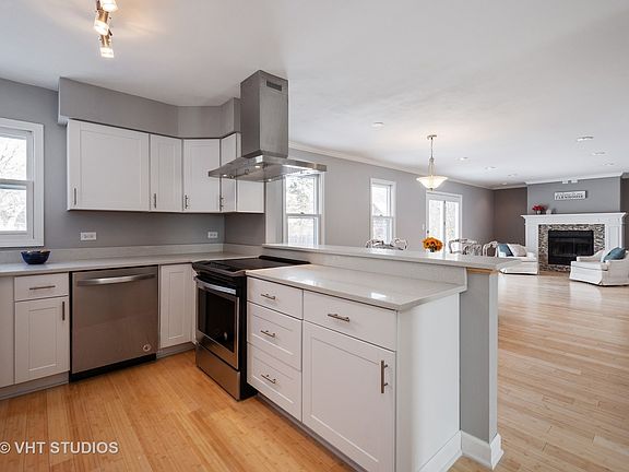 Charming two-story Colonial in sought-after Crystal Lake neighborhood! Completely renovated and MOVE-IN READY offering light, bright & airy open floor plan in farmhouse style for today's modern family needs. Gorgeous gourmet kitchen includes all NEW white cabinetry, quartz countertops & stainless steel appliances open to eating area and spacious family room with fireplace! Gleaming hardwood floors throughout the first level, all NEW white millwork. Inviting master retreat with updated en suite bath featuring porcelain tile flooring. Lower level offers finished 4th bedroom and awaits your design ideas for additional living space. Fabulous first floor laundry/mud room & extra large attached 2-car garage with ample loft storage! HUGE private fully fenced back yard for your outdoor entertaining enjoyment. Stunning! Premier location with excellent Crystal Lake Schools.
