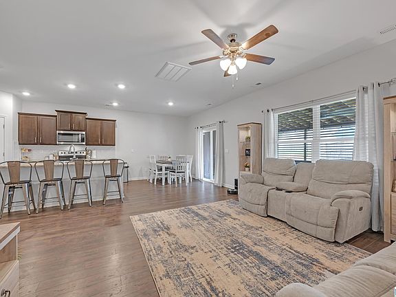 5 Bedroom, 3 Bath, in Doss Ferry built in 2021! You will love this beautiful home sitting on a large corner lot. The front door leads to a spacious foyer next to the flex room (currently used as a craft/class room). This space could easily be converted to an office, playroom, or dining area. Kitchen features granite counters, walk-in pantry, stainless appliances, & an island with bar seating. You will love the open floorplan with the spacious living/dining area that flows to the kitchen. The back door leads to a HUGE covered patio & fully fenced backyard! Main level features 1 bedroom & a full bath. Closet under the stairs has been converted to a pet palace. Upstairs you will find the large master suite (13x20) with walk-in closet & private bath. 3 additional bedrooms, full bath, laundry room & a HUGE loft are located upstairs too. The Doss Ferry community features a swimming pool, playground, clubhouse & exercise area. Book your showing of this beautiful home today!