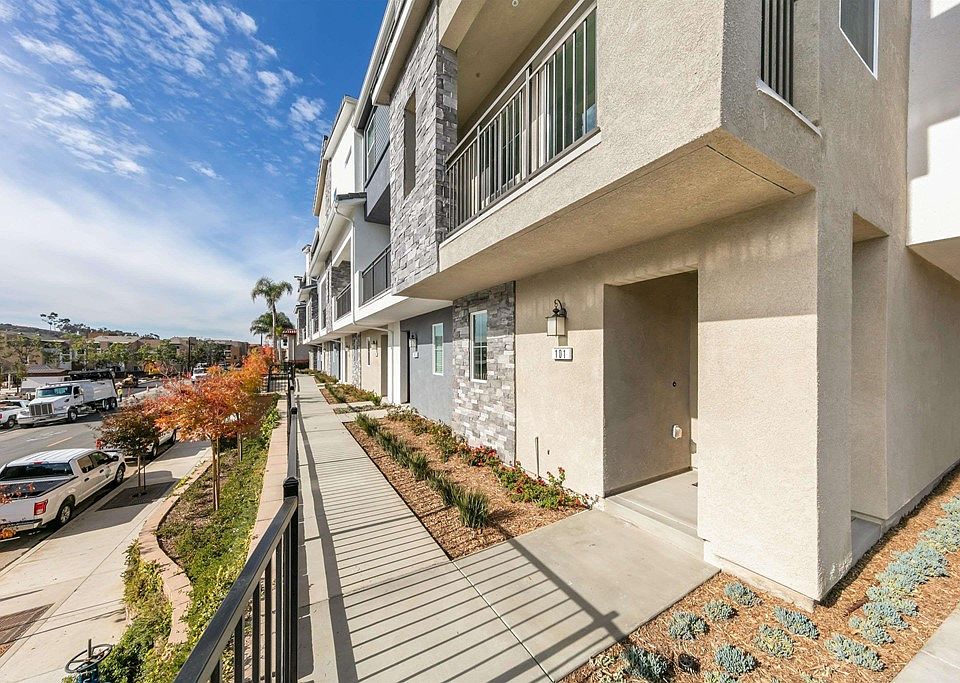 Gorgeous brand new townhome in the Viewpoint Development of San Marcos. Just north of the 78 at Twin Peaks, this unit is a perfect location for CSUSM. Close to the university, freeways, shopping, and light rail, with a kids' park across the street, this unit is a great place to call home. Washer, dryer, and refrigerator are included. Solar keeps the SDG&E bill to about $100-$150/mo Water has run about $20 per month and trash is about $80 every 2 months. Brand new 3 bedroom condo in the Viewpoint development of San Marcos. Located just north of the 78 convenient to shopping, freeways and CSUSM. Appliances are included and solar system lowers your electric bill.