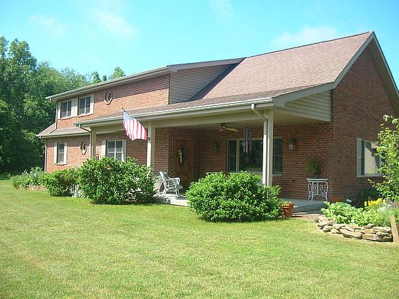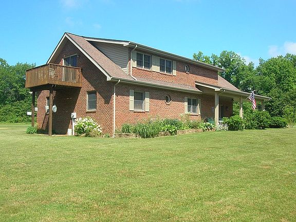 PRIVACY! Welcome to this custom designed and quality built home-just outside of Saxonburg- with a flowing open floor plan, situated on almost 8 acres of level, tree lined privacy- approximately 600' from the main road! The country sized eat in kitchen features Kraft Maid cabinets, Corian counters, 3 large pantry closets and flows into the expansive living room with a vaulted beamed ceiling, recessed lighting, french doors to the rear deck/pergola and oversized windows- allowing for great views and natural lighting. There are two 1st floor bedrooms and a den/office with 3 walls of custom made book shelves. The wide stair case leads to the 2nd floor Master Suite with double walk in closets, ensuite, private 10x8 balcony and 12x6 loft overlooking the main floor. Oak 5 panel doors, plaster walls and loads of storage! The basement is huge-1800 sq'- dry-endless possibilities! The 3 car detached gagrage has a 2nd floor 12x40 walkable storage space . Low utilities and taxes! A rare find!