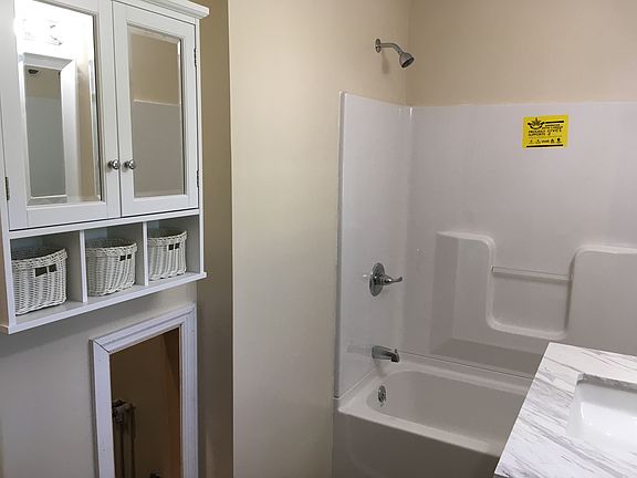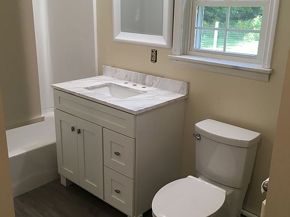 New bathroom with separated area with stackable washer/dryer that is present. One bedroom has two walk in closets [his and hers]. The other bedroom has large walk in closet. Side entrance has mud room with large closet that could be made into another bathroom. The kitchen was updated in the past few years with kraft-maid cabinets and dishwasher; eat-in kitchen style. The heating system is baseboard hot water and hot air wood furnace both have their own chimney. The well is drilled and the septic is concrete. Detached one car garage with a room above the garage for storage. One barn 24'x40' with new metal roof, great for storage or animals. This single family house was built in 1980 with 2x6 rough cut lumber and has plenty of room to be made bigger.