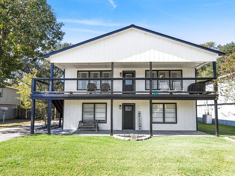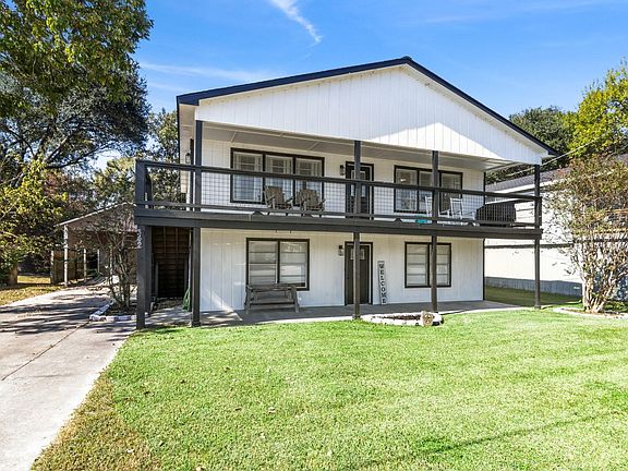 This property has options for daily life or making it a vacation home. Relax on your quiet, breezy balcony with your favorite beverage, made from your beverage bar nook. The small attached garage will store your lawnmower, yard tools, lawn games, and lake toys. A detached carport provides much needed shade with ceiling fans and 2 enclosed rooms for his/her sheds or workshops. It even has room to keep your boat covered when you're not taking it out on the lake. Two stairwells - inside and outside. This home offers 2 options for a primary bedroom, upstairs and downstairs. Large walk-through bathroom downstairs was remodeled, leaving options for creating your own vanity space, counter space, or adding more storage cabinets. The closet is 13' long with room to add your own dresser or custom shelving and rods to suit your needs. The backyard is fully fenced for your furr-babies or a playset for the kids. Plenty of windows that add natural light throughout the home.