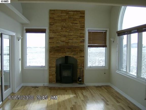 Spacious country home 15 min. N of Old Town Ft Collins. Grand 2-story entry. Great room concept, open kitchen w/ granite tile counter tops, huge family room, gas fireplace & built-ins, breakfast nook overlooking neighborhood open space. Butler's pantry & formal dining. Sunny & bright formal living room w/fireplace, walks out to 13x9 sun room. Master suite w/ two sided fireplace to adjacent den. 5 piece luxurious master suite. Unfinished walk-out basement. 3 car attached garage. Walking trails.