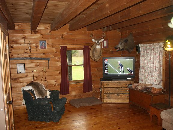 A great location!! A peaceful county setting,with a short commute to the capital district. Great views of the pond and wildlife from the lovely porch or one of 2 decks. 2.3 acres surround this rustic 3 bed,2 full bath log home with soaring cathedral ceilings, plenty of closet space and a great mud room . many major updates i Which include new furnace, ductwork,roof,doors,sump pump,and updated decks.Artisan well. Curtains excluded.Washer/dryer,shed neg. 24 hour notice due to pets