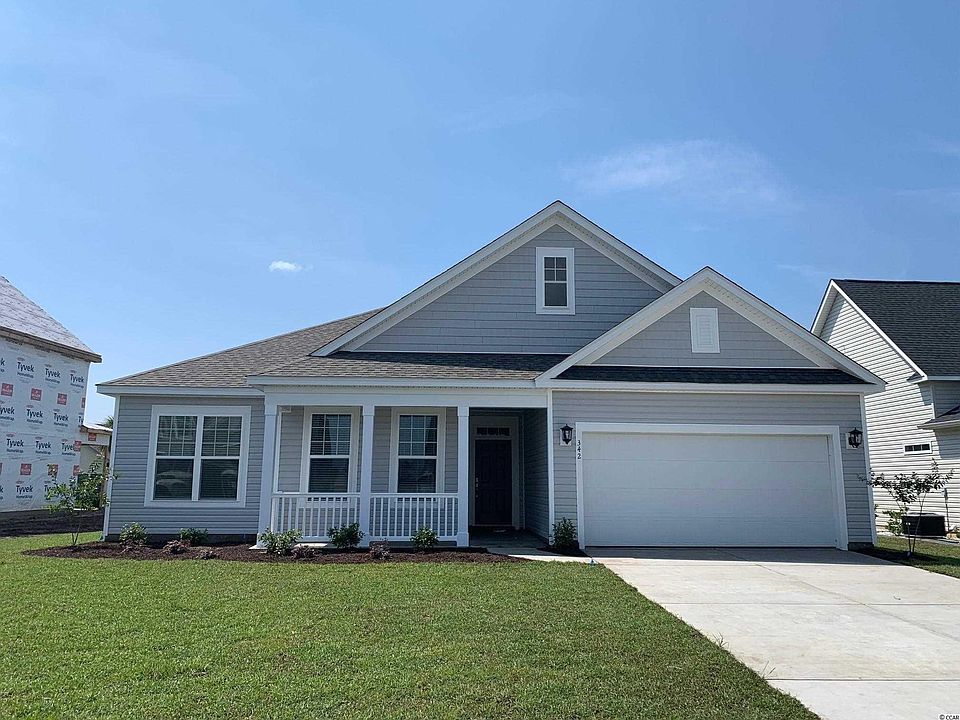 This Oxford home is fully equipped for your new life at the beach with Whirlpool Kitchen appliances (Stainless Steel side-by-side Refrigerator, NATURAL GAS Range, over-the-range Microwave-vented to the exterior, Dishwasher, and Garbage disposal), a Whirlpool Washer/Dryer, Window Blinds, Lawn irrigation system, and Gutters. Transitional-Shingle-Farmhouse style featuring 3 spacious Bedrooms, 2 Baths, and a Study. Decorative features include: Level-2 crisp white 42" Kitchen cabinets with a waste basket drawer, a walk-in Pantry with shelves galore, Level-3 Morning Frost Quartz countertops, a single bowl stainless steel kitchen sink located in the large island (perfect for buffet style entertaining or watching the chef at work), a fabulous Level-3 polished oval tile backsplash-Venetian Calcutta, upgraded farmhouse style Progress Lighting fixtures in both baths and pendants over the Kitchen island, ceiling fans in the Great room and Primary bedroom, Moen brushed nickel plumbing fixtures, Mohawk REV Wood flooring in the living areas and Primary bedroom, Level-2 Daltile Memoir-Petal Black tile flooring in Bath 2 (go ahead, buy the stenciled "Bath" sign; it will be a perfect fit). The marvelous Primary bath includes a walk-in tiled spa shower with a glass enclosure, dry-off bench, Level-2 Florentine 12x12 Daltile, a wall showerhead, and rain showerhead. This home is Energy Star Certified to ensure cost savings and comfort. Belle Mer boasts amenities galore: pool, clubhouse, exercise room, sidewalks, fishing and non-motorized boating lakes, and a premier location...between Myrtle Beach and Murrells Inlet, "Between The Two-17's", across the street from South Strand Commons (Lowe's Kohl's, McAlister's, and more), less than a mile from Super Walmart, and other shopping/dining venues. 3 miles to the public beach accesses in Surfside Beach, but less than 2 miles ("as the crow flies") so there is always a nice ocean breeze. It's time to enjoy the the life you always wanted at the beach in a fun, friendly, convenient community. Schedule an appointment to visit today!