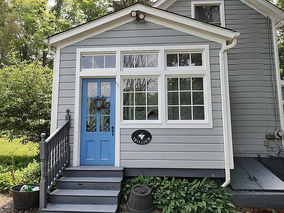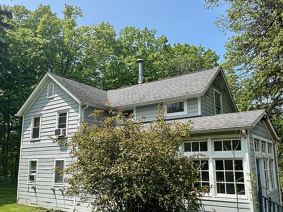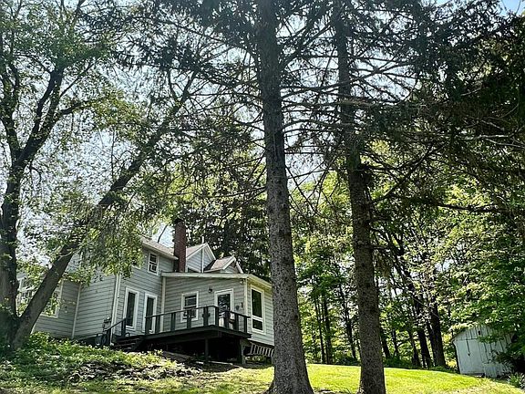 This attractive cottage, in move-in condition, sits on a beautiful country setting of 5 1/2 private acres, yet only 2 miles from the center of High Falls. The stunning wide-board floors in the living room and kitchen cabinets are from the red barn on the property. Spacious eat-in kitchen, full bath and guest bedroom complete the main floor. The second level includes a large office space with closet, so could be 3rd BR. Walk through to the large 22 X 13 1/2 sq. ft. master bedroom with vaulted ceiling, ½ bath and small deck. Off the kitchen is a comfortable deck where you can sit, relax in nature and look out over the meadow to the small stream. Heat is electric with wood stove assist and every room is zoned with its own thermostat. Partial basement provides storage. Pipes have never frozen, but in case of a prolonged deep freeze there’s a kerosene heater provided in basement area. Roof is about 10 yrs. old.