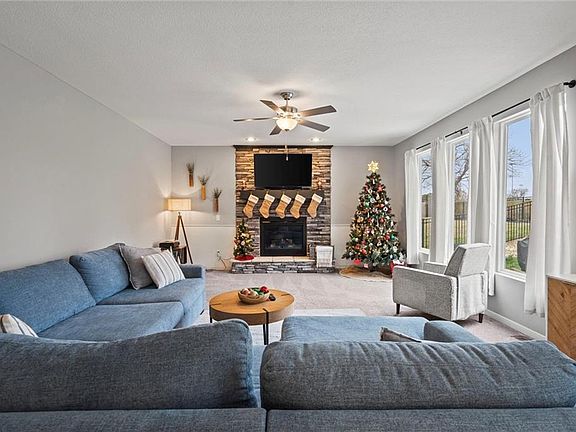 • Features: Carpet, Ceiling Fan(s), Fireplace