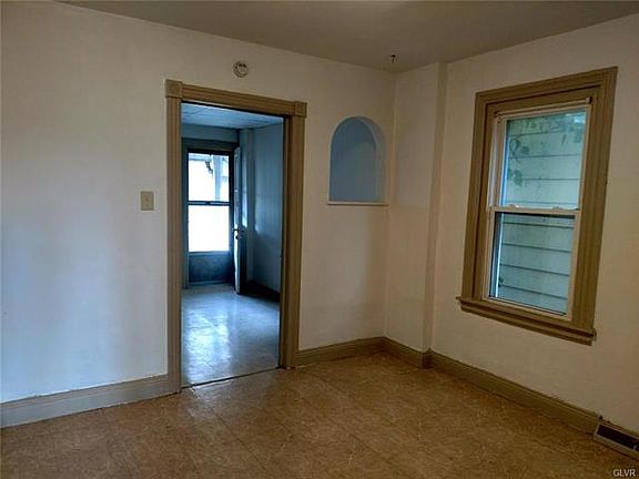 Semi-detached 2-3 bedroom in Allentown School District. New carpet, freshly painted and well maintained. First floor has a Living room, dining room and an eat-in kitchen. Covered patio in the back of the house and small yard ideal for relaxing. Second floor has a nice sized bedroom in the front; a smaller bedroom in the back and good sized room at the top of the stairs that could be a common area or a walk-through bedroom. The full bath with shower surround are off the middle room. There is an attic on the 3rd level that is primarily for storage but could be used as a bedroom. No smokers please, Pets negotiable, Section 8 approved.