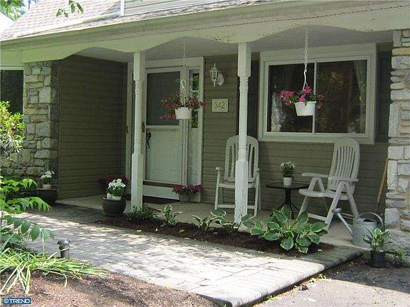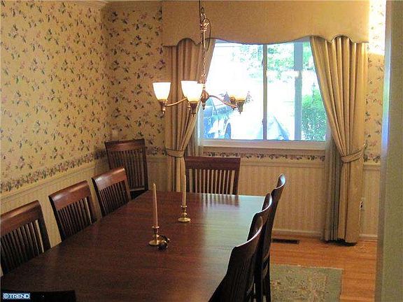 4 Bedroom, 2.5 Bath Colonial in Old Mill Woods in Middletown Township, situated on a lovely lot backing to protected wooded open space. Enter through the covered front porch into the Center Hall Foyer with ceramic tile flooring. To the left & right of the Foyer is the Living & Dining Rooms, both with hardwood flooring. The Kitchen has been remodeled & boasts an abundance of work & storage space with granite countertops & breakfast bar, 42 Maple cabinets, ceramic tile flooring & backsplash, stainless steel appliances, double sinks, recessed & under cabinet lighting, pantry & desk area. The Breakfast Room opens to the Sunroom addition, both with hardwood flooring. The Sunroom has 2 skylights, ceiling fan, high hats & 2 sliding glass doors, one leading to a covered deck, also with 2 skylights & one leading to a patio overlooking the private rear yard, complete with playhouse/shed. The Family Room has hardwood floors, stone fireplace with Propane insert flanked by book cases & a door to the rear yard. The Laundry Room with door to the rear yard has counterspace, deep cabinets & lockers to store the family's belongings. An updated Powder Room & 2 Car Garage with door to the side yard complete the first level. Upstairs are 4 Bedrooms, all with ceiling fans & 2 Full Baths. Master Bedroom has a walk-in closet & updated Master Bath with stall shower. Bedroom 2 has walk-in attic access through one closet & an additional closet accessing more attic storage space. Bedroom 3 is also generous sized & has a walk-in closet. The finished basement affords additional living space in the three finished areas plus a large storage area with Bilco doors. There is plumbing already in place for a bath. Other updates include newer central air & Heat Pump with propane back up (2009), high efficiency windows (2009) & roof (2012). Six panel doors throughout. Central vac. Conveniently located near shopping, dining & highways.