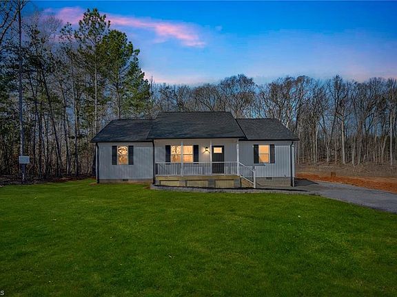Welcome to this gorgeous newly built ranch-style home! Nestled on a gorgeous wooded lot offering both privacy and tranquility. This beautiful home features 3 spacious bedrooms and 2 bathrooms, perfect for comfortable living. The inviting covered front porch is ideal for relaxing and enjoying the peaceful surroundings. Inside, the main level boasts a bright and airy open-concept layout, with vaulted ceilings that create a sense of space between the living room, dining area, and kitchen. The kitchen is a chef's dream, equipped with stainless steel appliances, shaker-style cabinets, a stunning granite slab countertop, and a central island that provides both function and style. Gorgeous updates are evident throughout, with stylish fixtures and finishes that add a touch of elegance to every room. The large laundry/mud room with a sink and plenty of storage space offers added convenience. This home is truly a must-see, combining modern furnishings with the serenity of a wooded retreat.