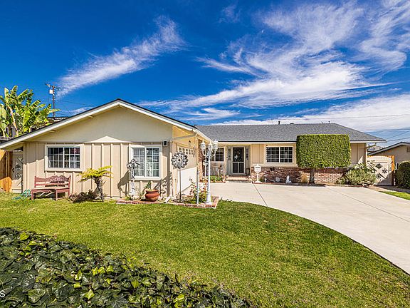Come fall in love with this well-maintained 3 bedroom 2 bathroom single-story home in the Foothill area of Ventura. As you enter from the stained glass front door into the foyer you see an open living room with beautiful wood like flooring throughout. The formal living room has a fireplace and is directly off the dining room. The light and bright kitchen features Corian countertops, center island with gas cooktop and eat in area. The first bedroom has french doors that can also be used as an office. Down the hall you have the second bedroom and a bright full guest bathroom. The primary bedroom is located at the back of the home and features two separate closets, and a security screened door that leads to the backyard. The primary bathroom has a vanity area that is separate from the shower.The backyard has a beautiful, trellised patio, mature landscaping, newer wood fencing and room to garden. The attached garage has a workshop and hobby room with a laundry area and large pantry. Additionally, the home has a newer HVAC system, hot water circulation pump, newer water heater, ceiling fans in every room and dual pane windows. Property is close to local parks, shopping and easy access to the 126 highway.