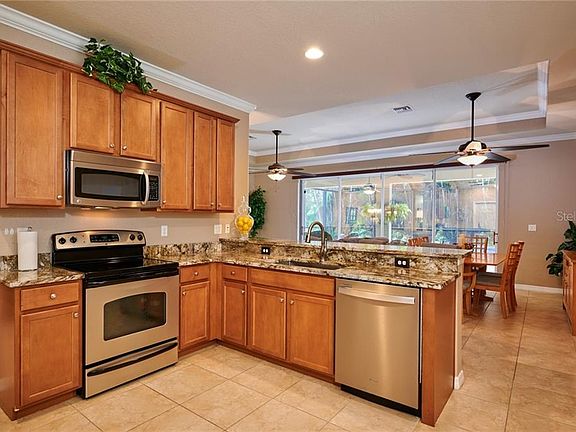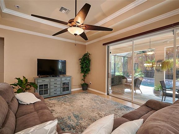 - Interior Features: Ceiling Fans(s), Eating Space In Kitchen, Stone Counters, Walk-In Closet(s), Crown Molding, Window Treatments, In Wall Pest System, Tray Ceiling(s)