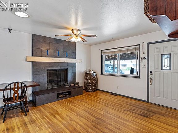 Welcome to this ranch-style home located in a serene and mature neighborhood close to Fort Carson This property keeps a thoughtfully designed layout with three bedrooms on the main level and two additional bedrooms in the basement, making it ideal for those seeking extra space. Stepping inside you are greeted by the warm and inviting main living room featuring a cozy wood-burning fireplace, where you can gather with loved ones on cool evenings or create lasting memories during the holiday season. The real wood floors throughout the main level add a touch of natural beauty and create a seamless flow from room to room. The sunroom, situated on the main level, provides the perfect spot to bask in natural light while enjoying your morning coffee. It also serves as an excellent space for entertaining guests and hosting gatherings with its inviting atmosphere. The main level also houses a full bath, conveniently serving the three well-appointed bedrooms. The basement level boasts two additional bedrooms along with a convenient 3/4 bath, providing ample space for guests or accommodating a growing family. Outside features a spacious yard, providing endless opportunities for outdoor activities, gardening, and enjoying the fresh air. Don't miss the chance to make this home your own - as you can see the sweat equity is there.