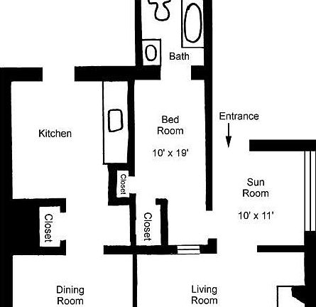First-floor residence located in a Historic Landmark apartment building with hardwood floors; stained glass throughout; windows spanning living room/dining room wall; wall-unit air conditioning; kitchen with refrigerator, range and dishwasher; decorative fireplace; built-in cabinets in living room, dining room and kitchen; private storage lockers and coin-operated laundry facilities available in building. Resident is responsible for electric. Heat is included in the rent.