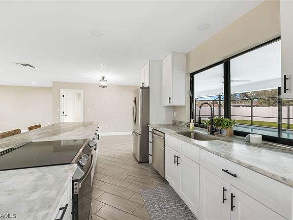 Amazing location for this 3 bedroom, 3 bath remodeled 2200 sf pool home with privacy fence! Located within a few blocks of downtown Cape Coral offering farmers markets, amazing restaurants, entertainment, shopping and more! New tile, kitchen, granite countertops, stainless steel appliances, new baths, 2 living rooms, one with a fireplace and coffee bar. Oversized large garage and separate laundry room with plenty of storage areas. Roof 2019, new hot water tank, pool was refinished down to concrete! Nothing to do but move in or rent out! Agent related to seller