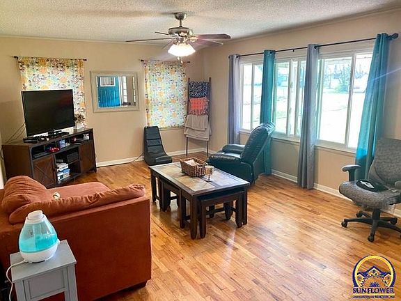 Check out this beautiful ranch style home. 3 bedroom, 1 bath with a large rec room that includes a cozy wood fireplace and sliding doors to the walk out patio. Plenty of storage room throughout the home. Windows are only 1 year old. 2 car detached garage plus a large tool shed with running electricity. Shawnee Heights school district and 2 acres of land. Enjoy quiet country living within the city! This house includes a home warranty with an acceptable offer. Call today for your private showing.