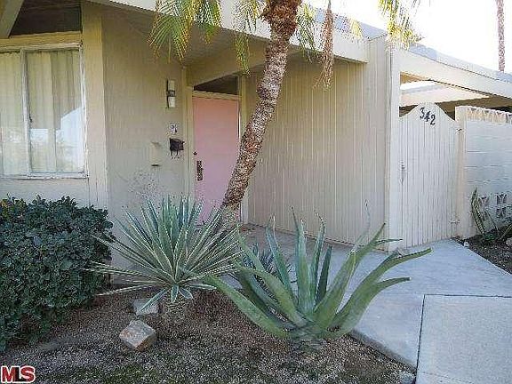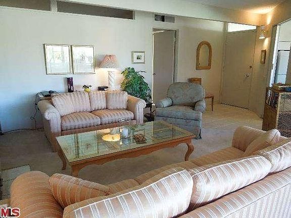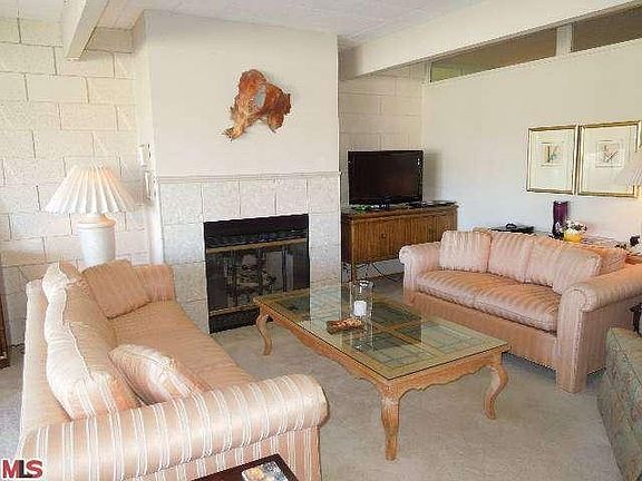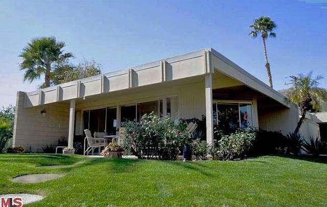 Lovely 2 bedroom, 2 bath William Krisel-designed unit with a gas fireplace in the living room. Gorgeous eastern views of the greenbelt and the mountains from the living, dining and kitchen areas. Maximum exposure from the morning sun adorns the poolside patio. Condo has been partially updated with marble tile counters in the bathrooms, tile floors in the kitchen and dining areas, halls and bathrooms, oak cupboards in bathrooms, and newer carpet in the living room and both bedrooms. Kitchen features a vintage oven original to the unit (a true collectible!) plus other original features. New roof in August, 2012. New exterior painting as of May 2013. Take a look at this true mid-century gem!