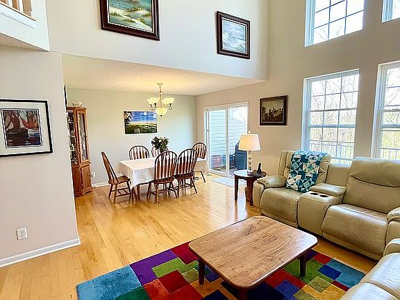 Wow! Sell the lawn mower! Impressive and spacious 3 bedroom 3 and 1/2 bath condo with 2 car attached garage! Convenient location near everything with 3 finished levels. Very well maintained with private wooded view, natural light, fully equipped kitchen with black stainless appliances, maple cabinets, quartz countertops, tile backsplash, first floor laundry, generously sized deck, finished lower level with walk out to covered patio, private wooded view, 2 story great room, hardwood floors. Large storage room. New deck is coming soon (on list to be completed by HOA). HOA includes pool, water and sanitation; trash included in county taxes. All appliances stay!