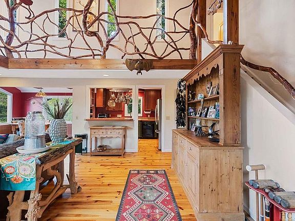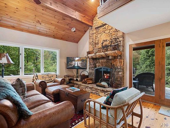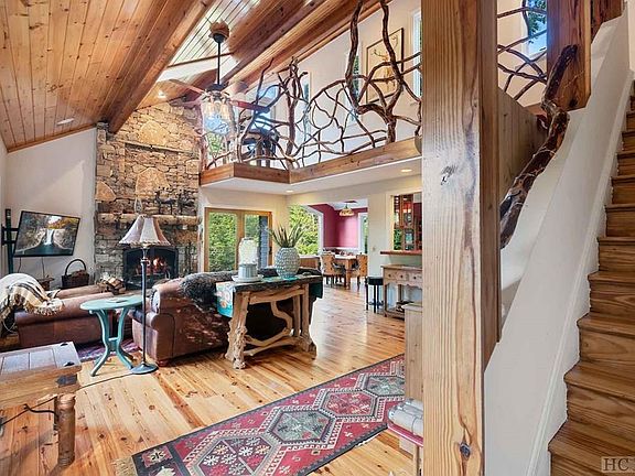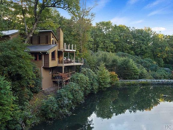 Waterfront, mountain views and privacy in Highlands! This hidden jewel offers a peaceful and serene setting that's just good for the soul. This rustic feeling multi-level contemporary style home sits on a +/-1.64 acre lot that showcases views of the pond below and Shortoff Mountain to the northwest. The stunning hardwood floors and tongue and groove ceiling with floor to ceiling wood-burning fireplace on the main level add to the mountain ambiance that is showcased from the multiple levels, decks and porches throughout the home. The master on main has a it's own gas fireplace and a large soaking tub to maximize relaxation. Privacy is assured for guests with 2 bedrooms up (with loft and private balcony overlooking pond below) and a large bonus room down with a wet bar and full bath that would be a great man cave, media room or additional sleeping area. Take your pick and sit out and enjoy the sounds of nature from the main level wrap around deck, upstairs balcony area or screened porch on the lower level. A one car garage offers peace of for your vehicle during inclement weather. The home was painted 3 years ago, roof was replaced 2 years ago and a new dual-fuel HVAC was installed in January 2021. The present owner also added the upper balcony and installed a tankless water heater in the home.