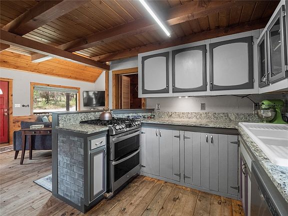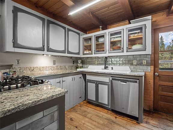 Here is the private mountain retreat you've been looking for! Enjoy this quaint cabin in the woods in a quiet neighborhood and only minutes from the Historic Town of Fairplay. Hike, bike, or ride your horses directly from the house into the nearby National Forest. The home features updated kitchen cabinets, appliances, and countertops. Additional features include a wood burning stove in the living room, vaulted ceilings, a covered deck, and a private deck off of the loft bedroom. The property also has an oversized, 2-car detached garage, and a fenced in horse corral. Located only 25 miles to Breckenridge and world-class skiing!