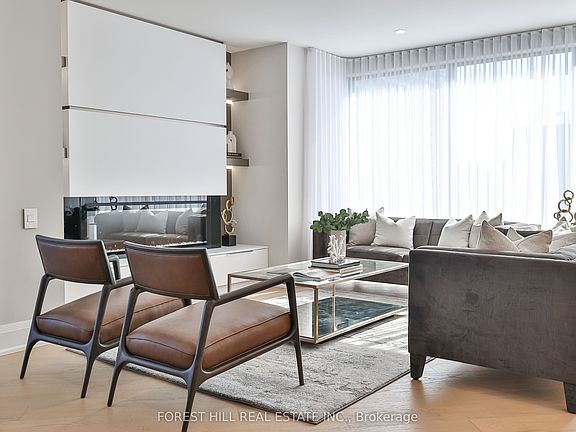 Experience an extraordinary & rare opportunity in the prestigious enclave of Forest Hill. A meticulously renovated 1,750 SF corner suite nestled within an exclusive boutique building. This turnkey residence showcases 2 spacious bedrooms & 2 bathrooms, boasting bespoke finishes that elevate everyday living. Bathed in natural light, the suite features floor-to-ceiling glass creating a bright and airy atmosphere. The sumptuous light wood floors add a sophisticated touch to every room. A striking fireplace with custom built-ins & integrated lighting, serves as the anchor of the main living space. The thoughtfully designed split floor plan offers a seamless flow ideal for entertaining. The chef's kitchen is equipped with high-end Miele appliances, a stunning quartz center island with overhead hood fan & ample cabinetry. Breathtaking views of the surrounding tree canopy. Retreat to the gracious primary suite, featuring custom built-in cabinetry & a spa-like ensuite, complete with double sinks, a spacious walk-in shower with bench, heated floors & heated towel rack & exquisite finishes that exude opulence. The generous second bedroom is the epitome of comfort & style, while the additional bathroom boasts a luxurious soaker tub, heated floors & towel rack. This impressive suite also includes a full laundry room with sink and extra storage. Completing the package are 2 parking spaces & large locker. Situated just steps away from The Village, Loblaws, boutique shops & fine dining options, as well as Winston Churchill Park & scenic ravines. Public transit is conveniently around the corner. This exceptional residence harmonizes exquisite design with an unbeatable location, setting the stage for an enviable lifestyle in one of Toronto's most sought-after neighbourhoods.