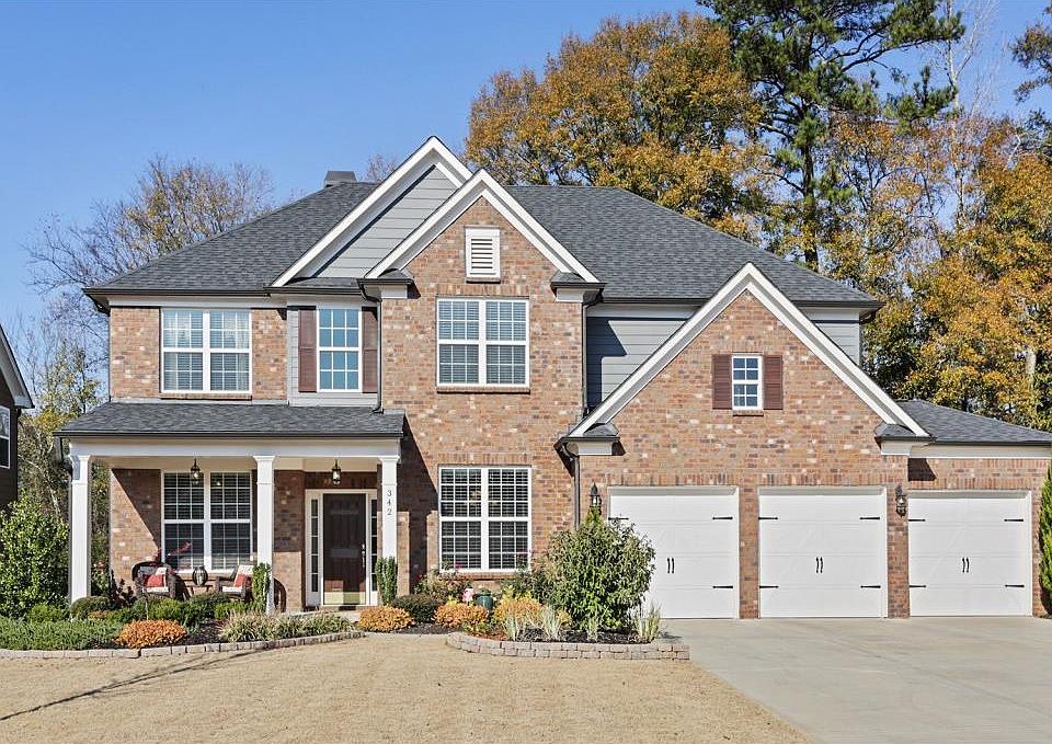 The one you'll want to call home! This gorgeous brick home is situated in a cul-de-sac & exudes lots of curb appeal. At the heart of the home is the open-concept kitchen, dining & living area that meets the demands of any modern family. Upgrades include custom built-in bookcases, coffered ceilings, butlers pantry w/wine fridge, dbl oven, granite countertops & vanities. Office w/French doors, formal dining rm, guest bedrm & full bath on main. Oversized master plus 3 bedrms & bonus rm upstairs. Large patio on level, private, fenced backyard. Minutes from DT Woodstock!