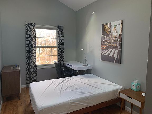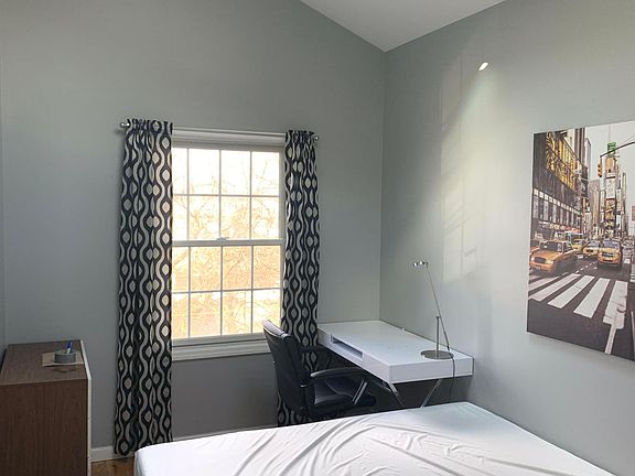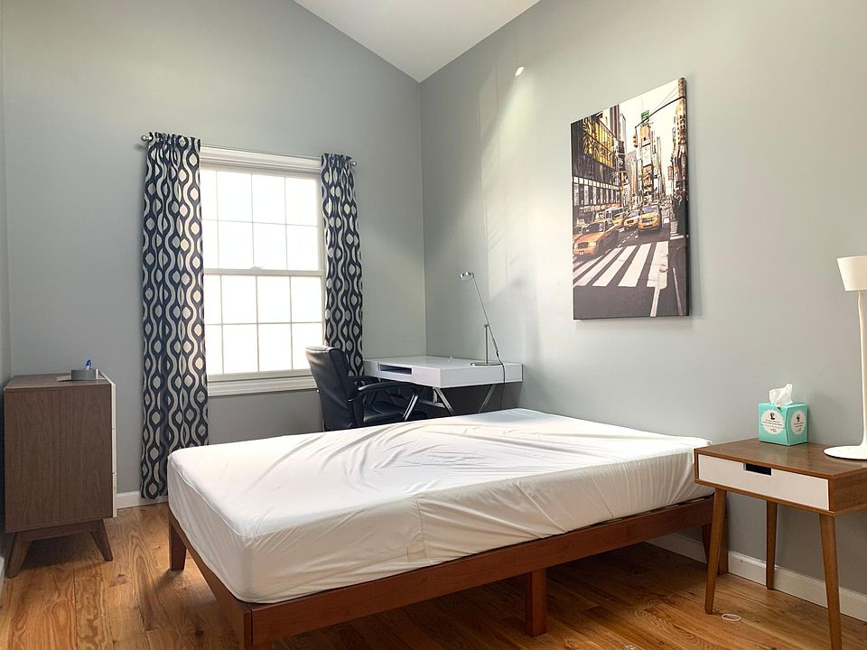 Furnished room for rent in Jersey City, Heights Area. Price: $1200/month - price depends on the length of the lease Location: crossroads of Terrace Av and Leonard St For a single person, NO PETS. Credit score: 680 Income requirement: 3x monthly rent Ideal for working people, young professionals, remote workers, digital nomads, students, etc. The apartment has 5 bedrooms and 2 full bathrooms. The room has plenty of space, a big closet, and a nice desk for working. - Comfortable full-size bed with nightstand, lamp, desk, and mirror; - All bills included in the price; - Laundry machine and dryer available for your use; - Central cooling and heating; - Stainless Steel Appliances (Refrigerator, Stove/Oven, Dishwasher, Microwave); - WiFi included; - Fully equipped kitchen. All our tenants are screened. We do credit and background checks. NO BROKER FEE. Few lease term options are available. The price depends on the length of the stay.